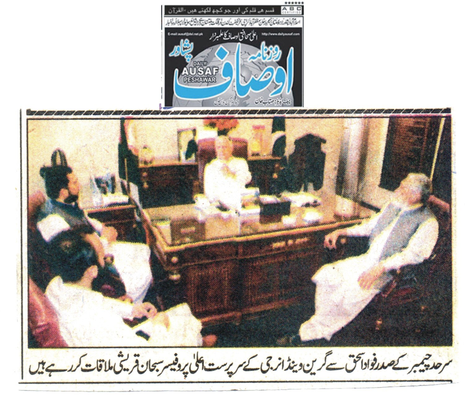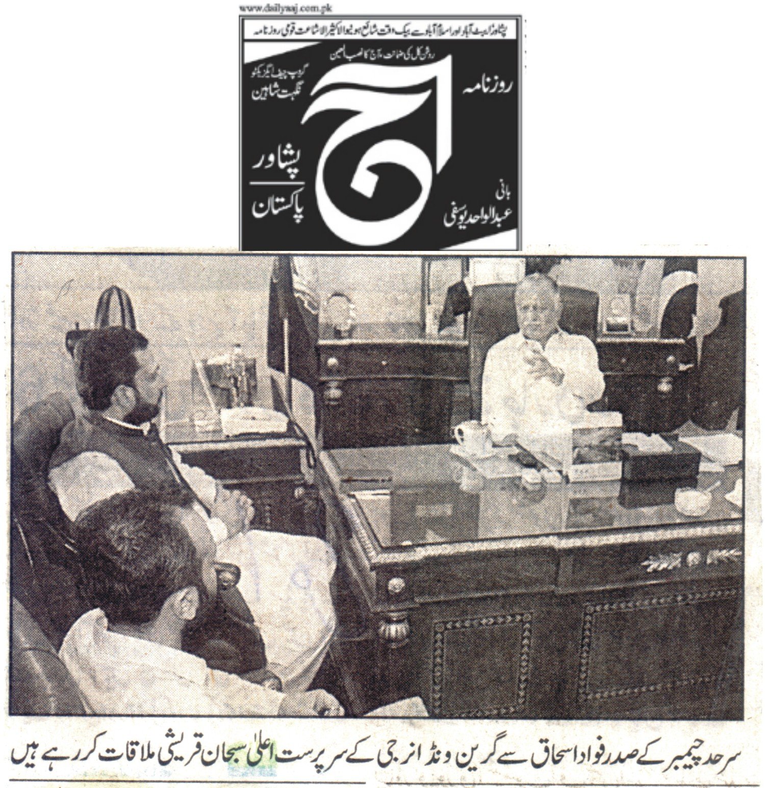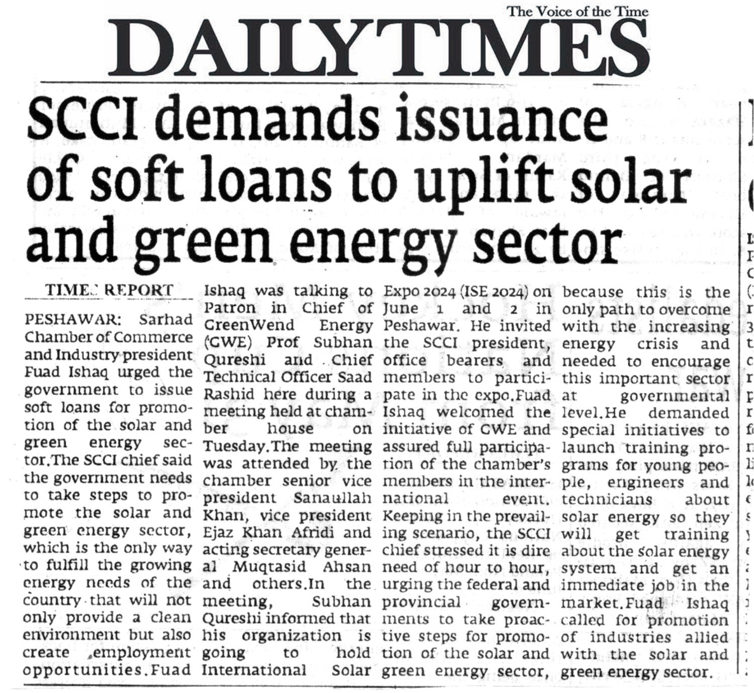 Fuad Ishaq was talking to Patron in Chief of Green Wend Energy (GWE) Prof Subhan Qureshi and Chief Technical Officer Saad Rashid here during a meeting held at chamber house on Tuesday.