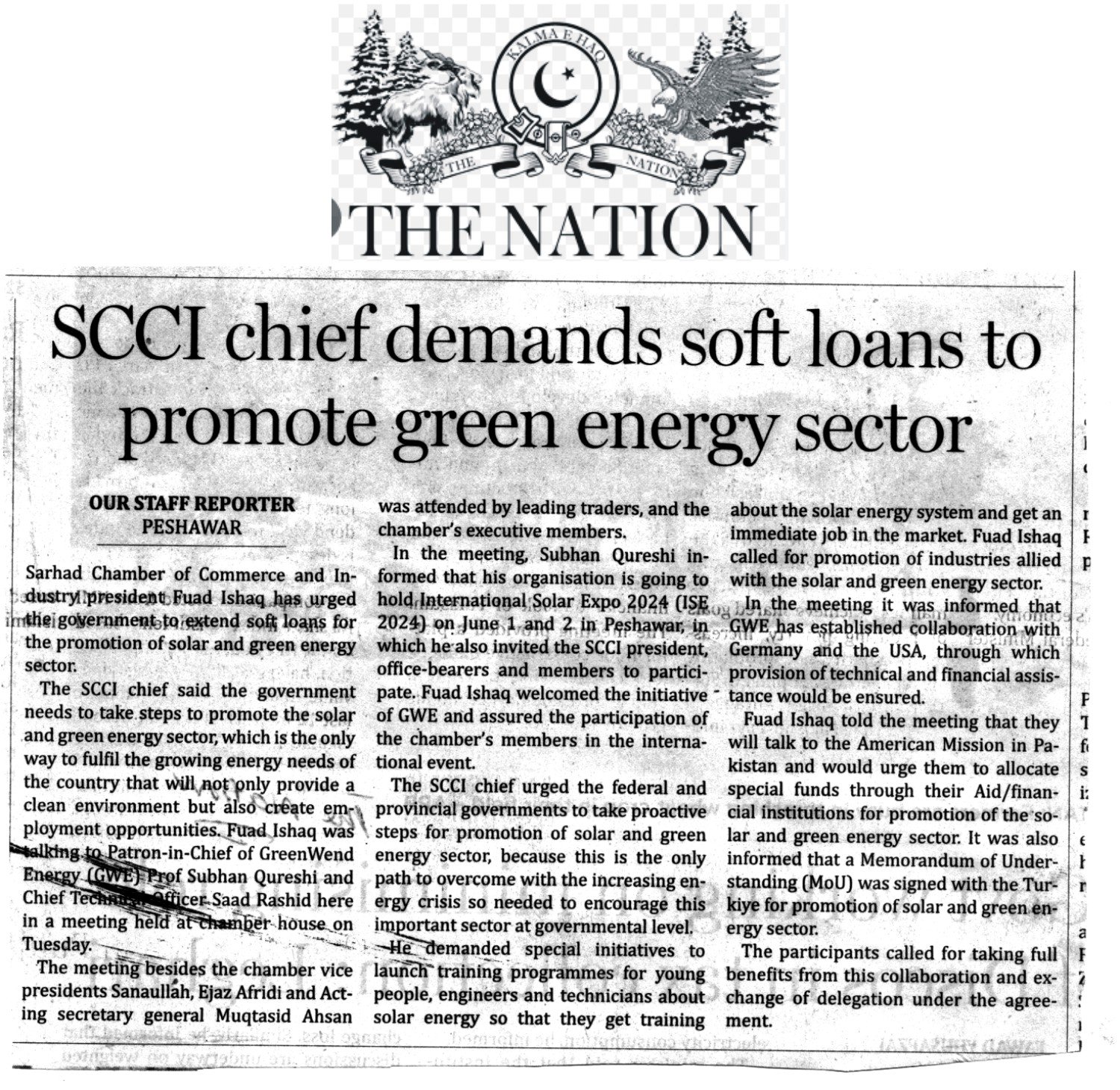 Fuad Ishaq called for promotion of industries allied with the solar and green energy sector. During the meeting, it was shared that GWE has established collaboration with Germany and the U.S, through which provision of technical and financial assistance would be ensured.
