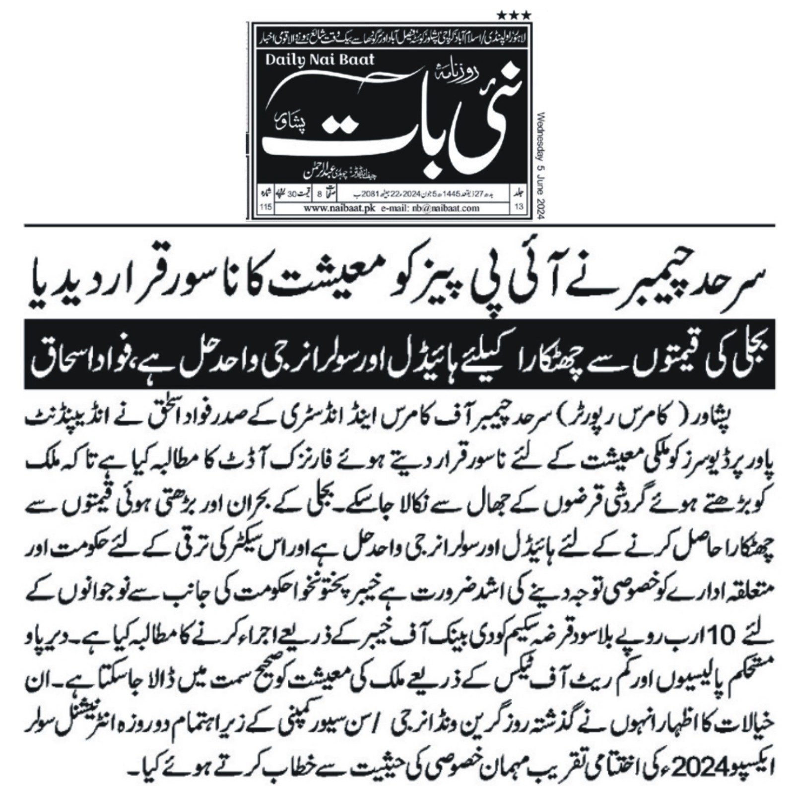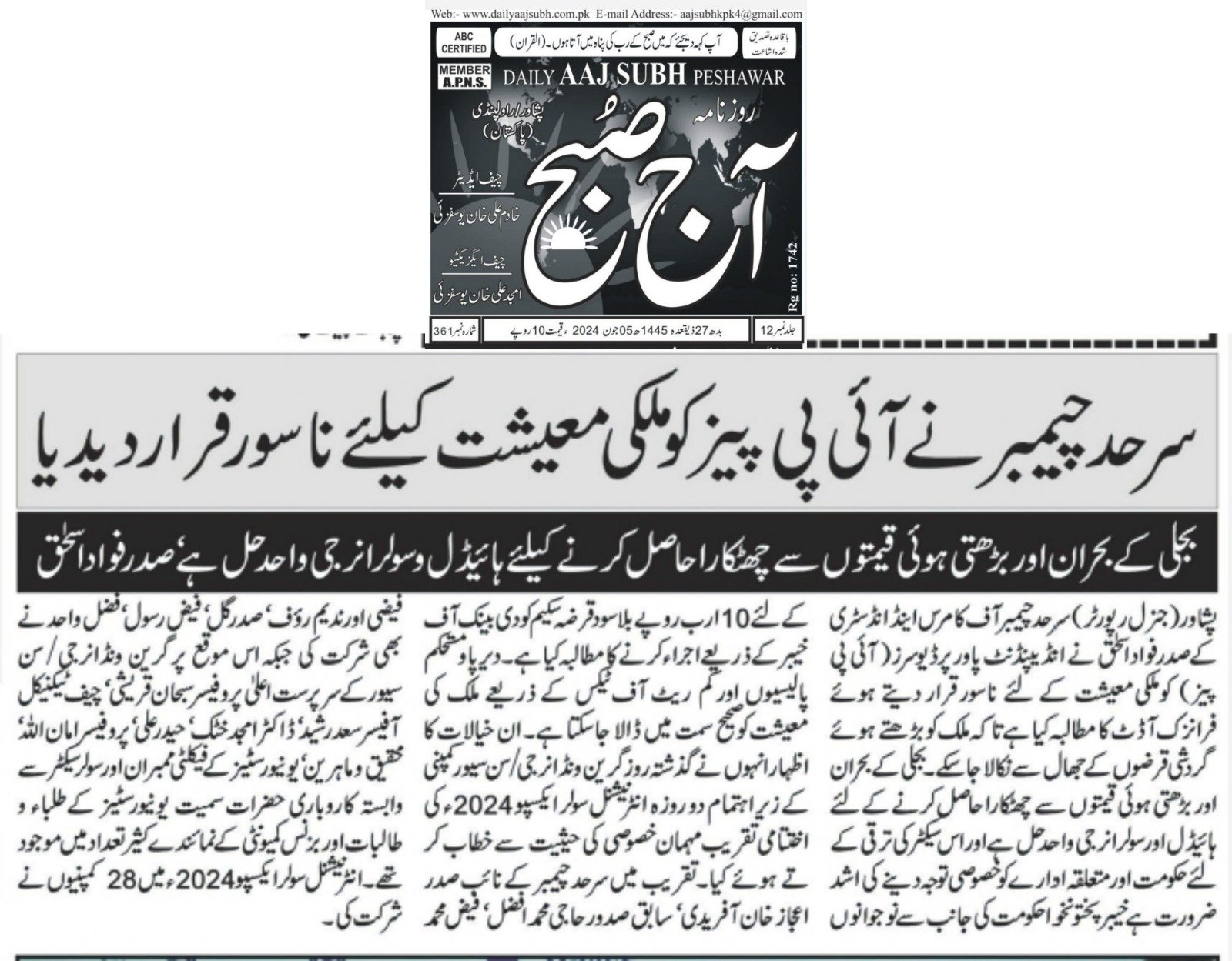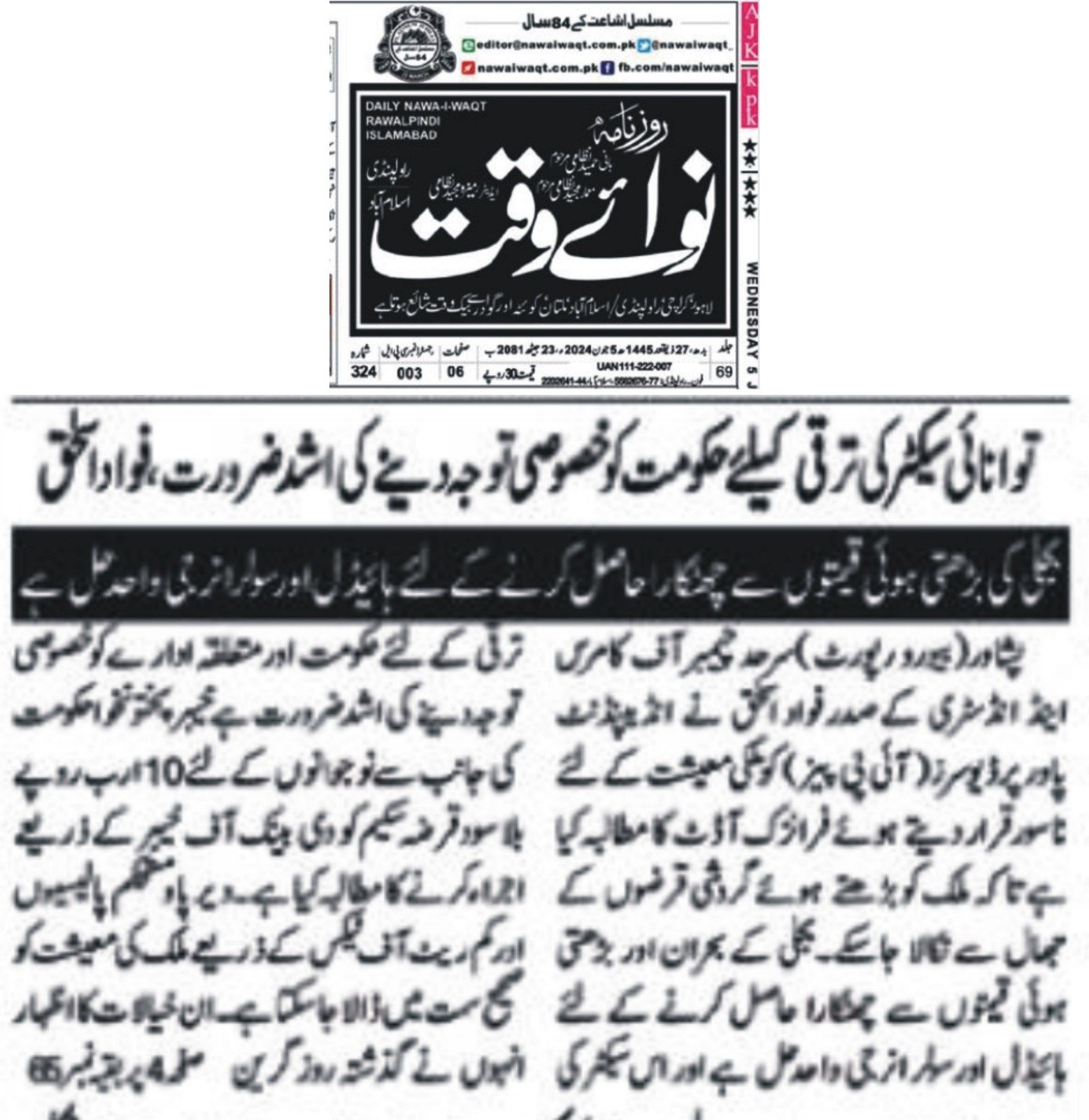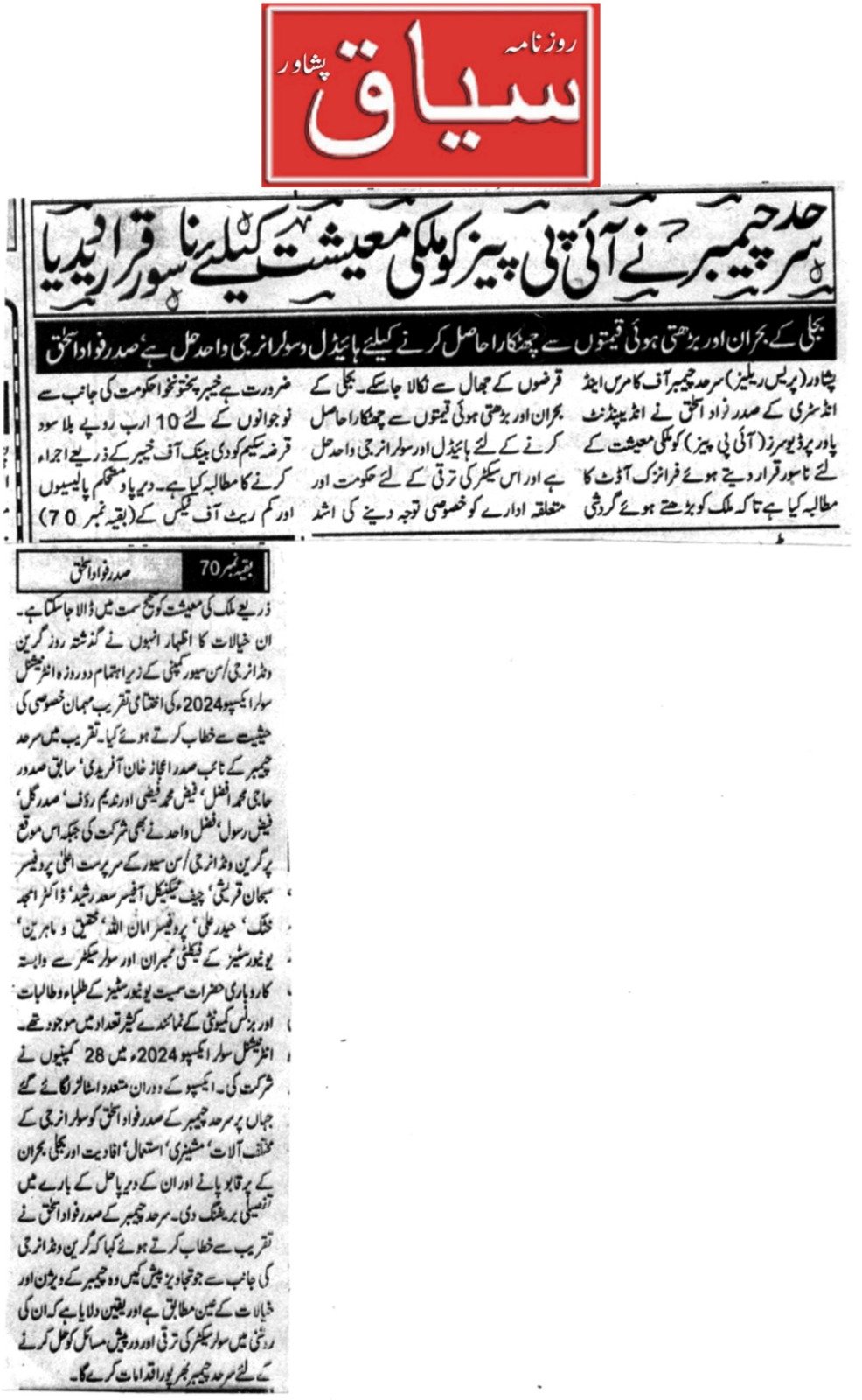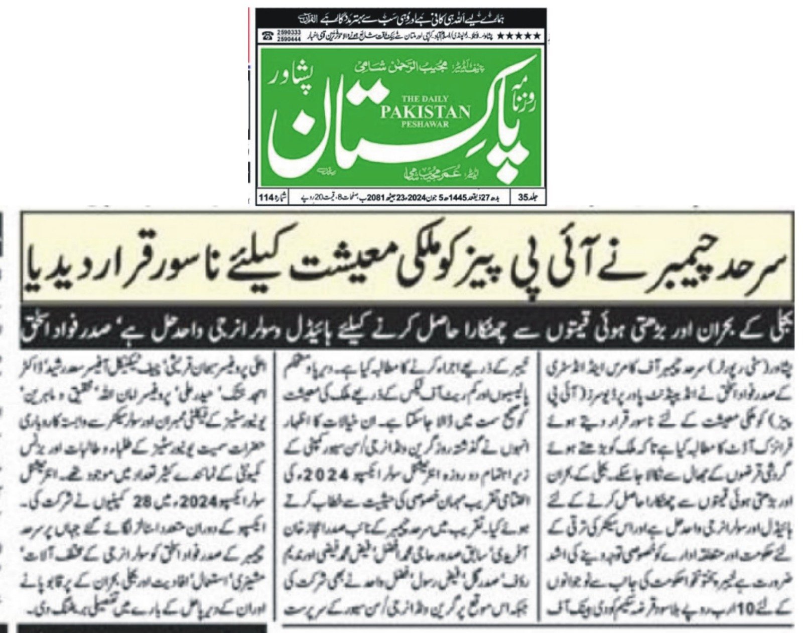The recent bloom in the solar industry through investment of private sector and the residential and commercial consumers have resulted in expansion of the volume of business several folds (1.41 GW in 2024), but rumours of unjustified taxing of the consumers instead of incentivizing it, is resulting in an unrest among the people. A duty of about 40-50% has been imposed on import of inverters and lithium batteries, which is strange as the solar panels have been exempted from such duties. Hence, we recommend that Solar Energy Applications must be taken as a higher priority policy item at federal and provincial levels through legislative, administrative and financial coverage.