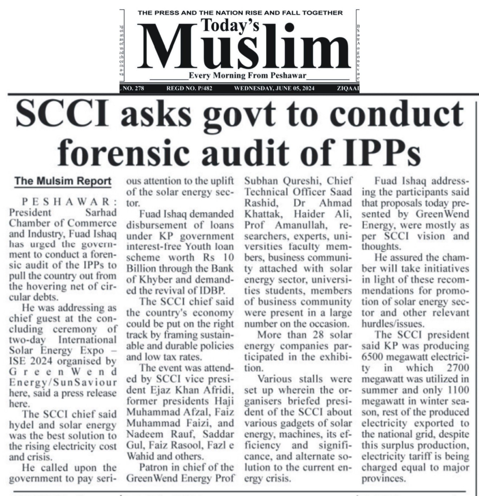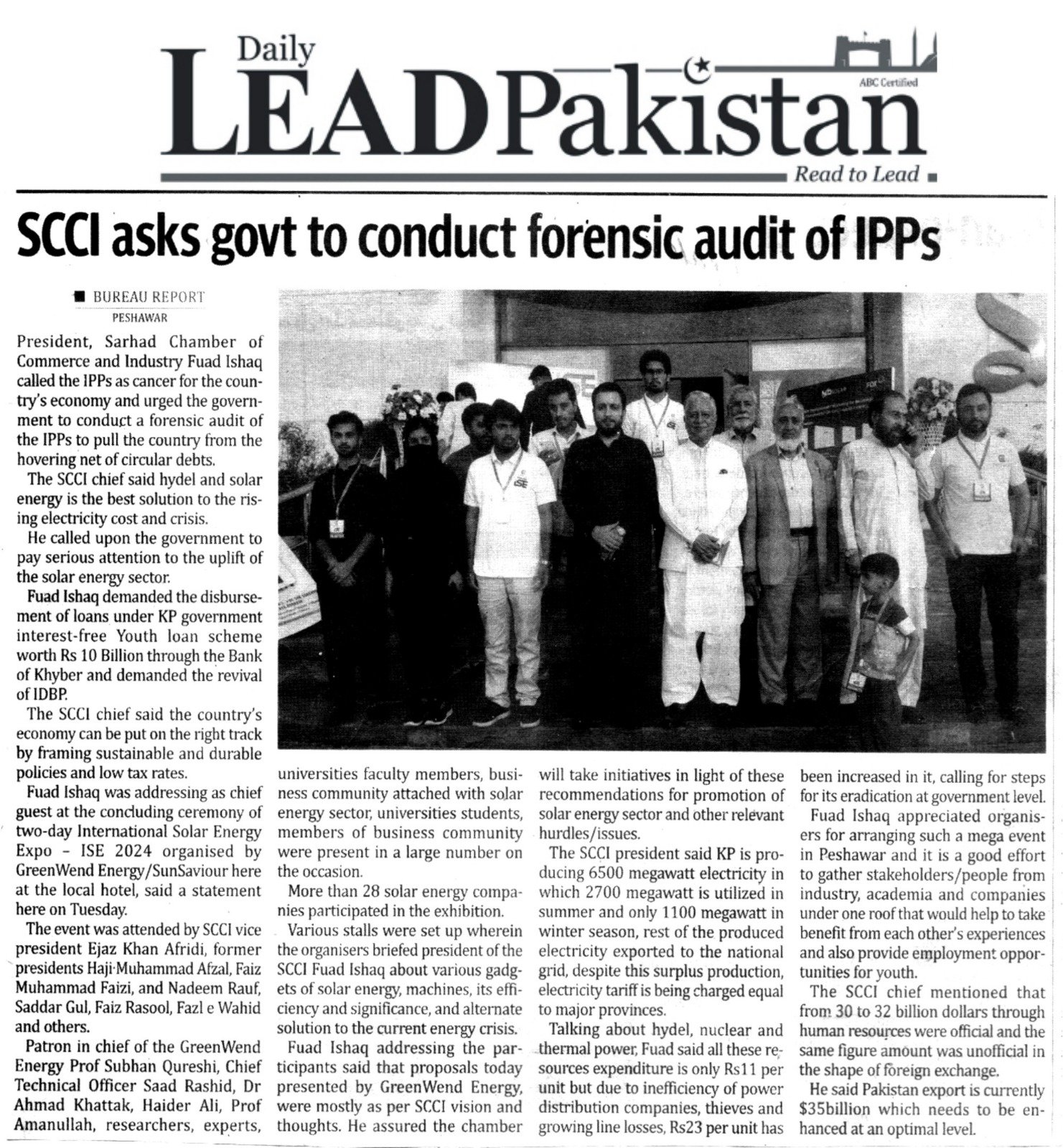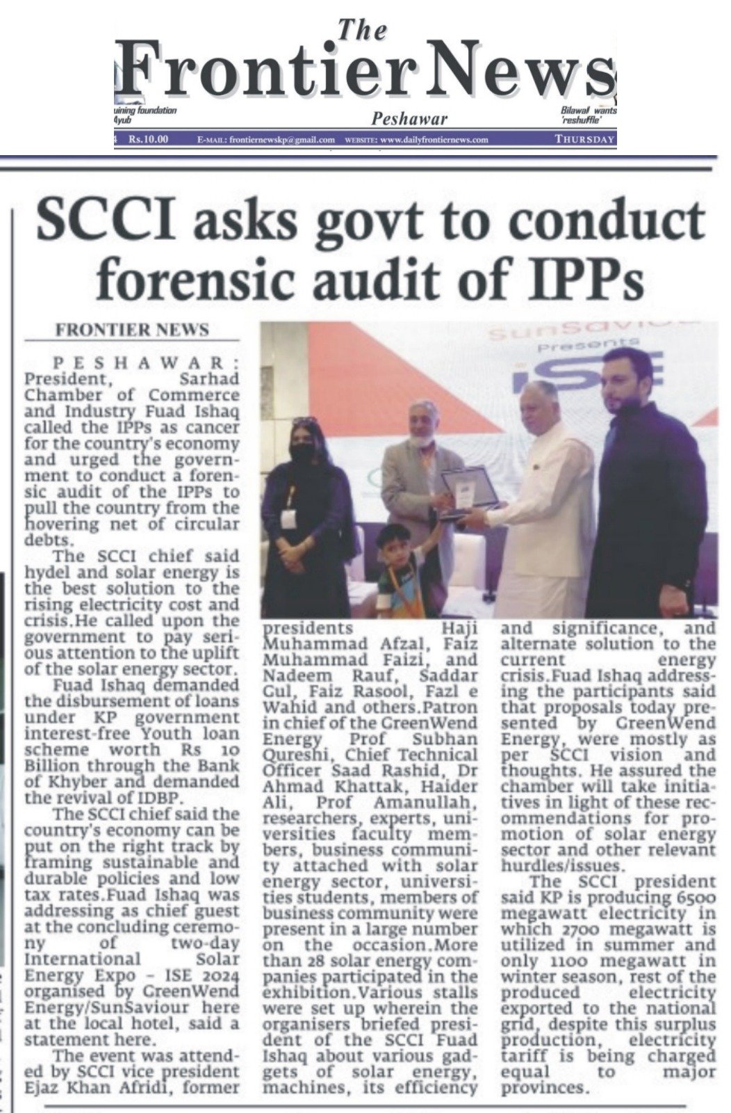 President, Sarhad Chamber of Commerce and Industry (SCCI), Mr Fuad Ishaq chaired the Concluding Session. The President SCCI urged the government to take steps to promote the solar and green energy sector, which is the only way to fulfil the growing energy needs of the country that will not only provide a clean environment but also create employment opportunities. Keeping in the prevailing scenario, the SCCI chief identified solar energy as the only path to overcome the increasing energy crisis and needed to encourage this important sector at governmental level. He agreed on the Recommendations presented by Prof M Subhan Qureshi, Chief Patron ISE2024 and establishment of a Steering Committee on Solar Energy to oversee the issues faced by the to: 1) oversee the issues faced by the stakeholders; 2) facilitate the ongoing university graduates to establish entrepreneurship models and; 3) to work on reducing the burden on public treasury through solarization of the state owned entities like universities, schools, colleges, offices, tubewells, etc.