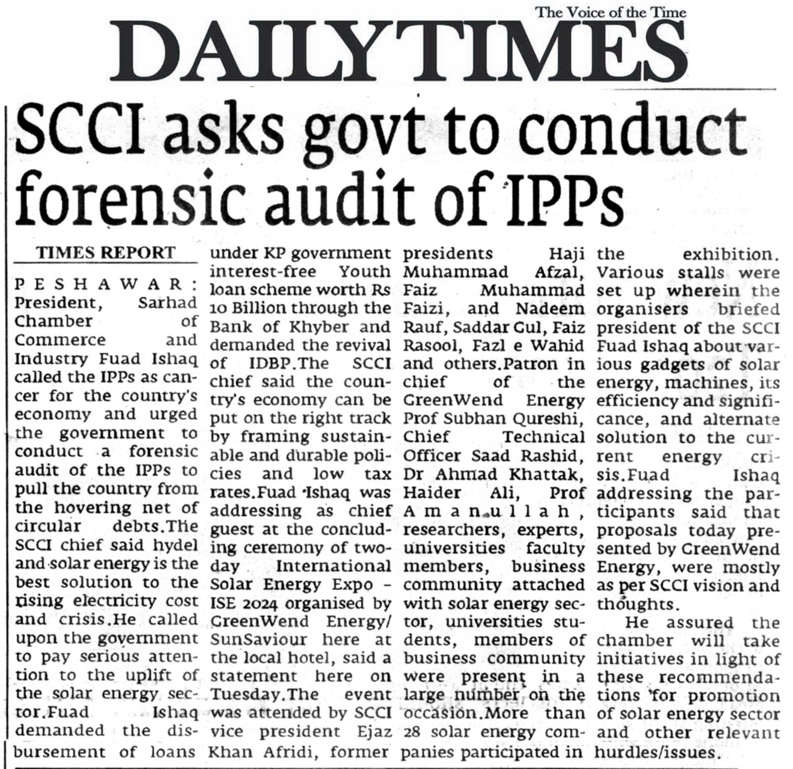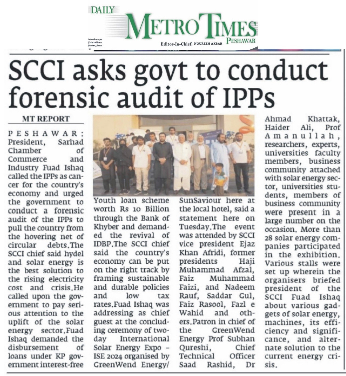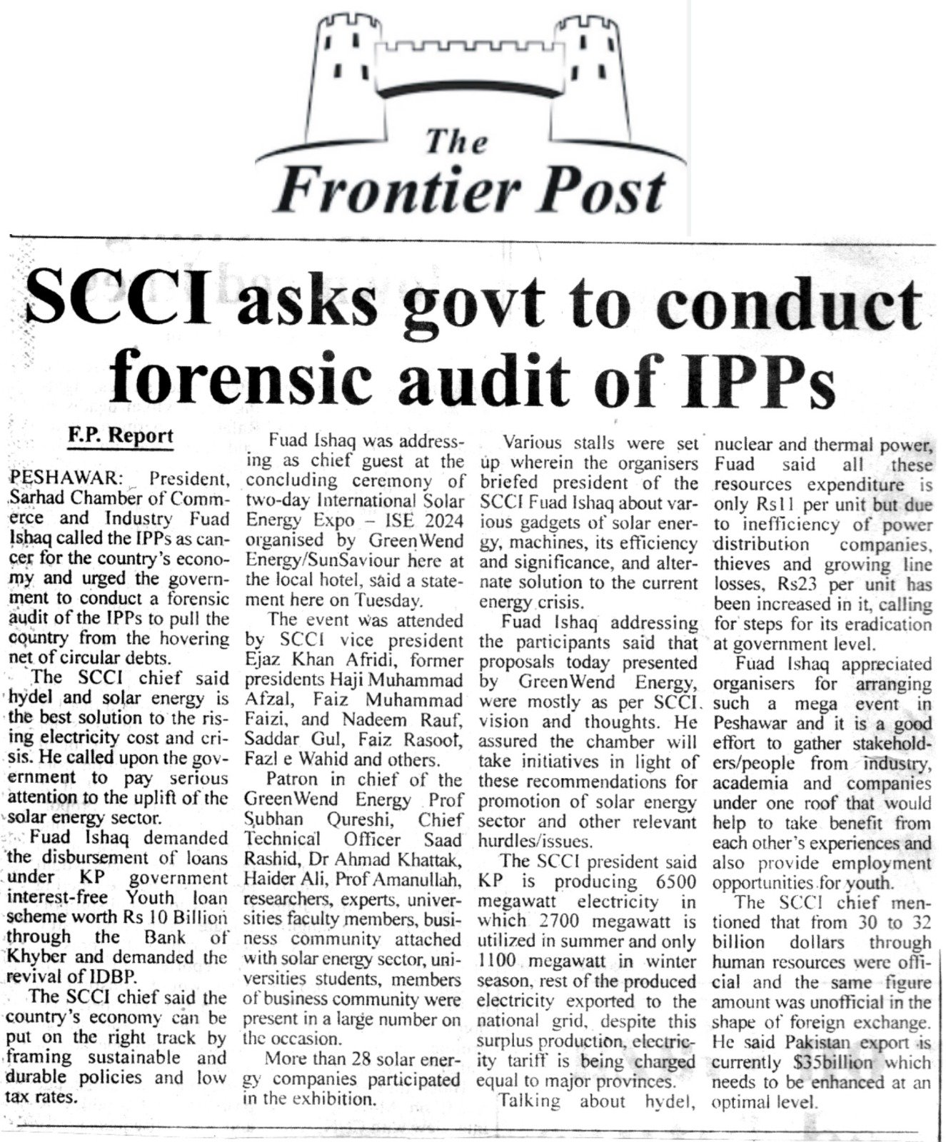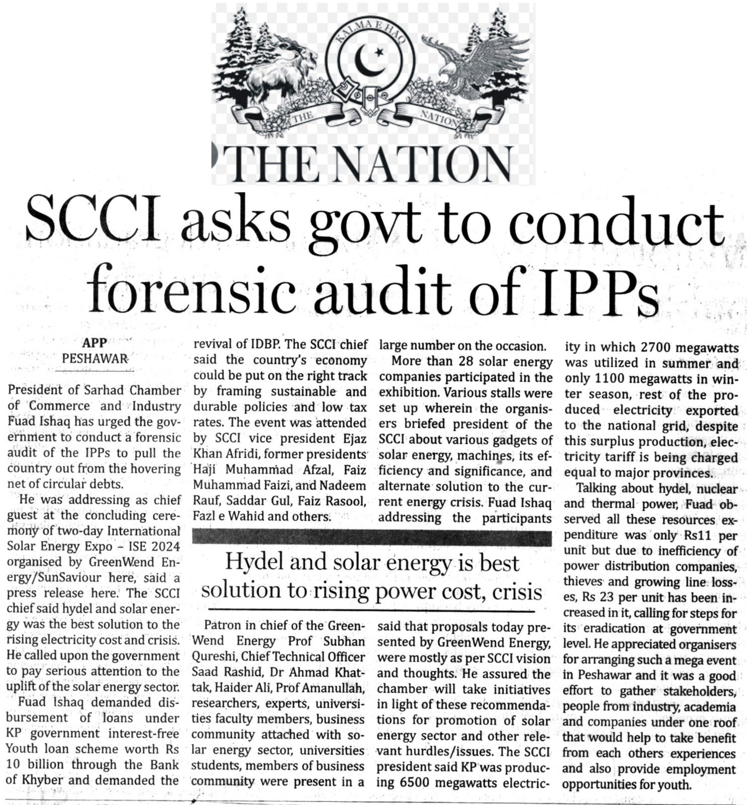 President, Sarhad Chamber of Commerce and Industry (SCCI), Mr Fuad Ishaq chaired the Concluding Session. The President SCCI urged the government to take steps to promote the solar and green energy sector, which is the only way to fulfil the growing energy needs of the country that will not only provide a clean environment but also create employment opportunities. Keeping in the prevailing scenario, the SCCI chief identified solar energy as the only path to overcome the increasing energy crisis and needed to encourage this important sector at governmental level. He agreed on the Recommendations presented by Prof M Subhan Qureshi, Chief Patron ISE2024 and establishment of a Steering Committee on Solar Energy to oversee the issues faced by the to: 1) oversee the issues faced by the stakeholders; 2) facilitate the ongoing university graduates to establish entrepreneurship models and; 3) to work on reducing the burden on public treasury through solarization of the state owned entities like universities, schools, colleges, offices, tubewells, etc.